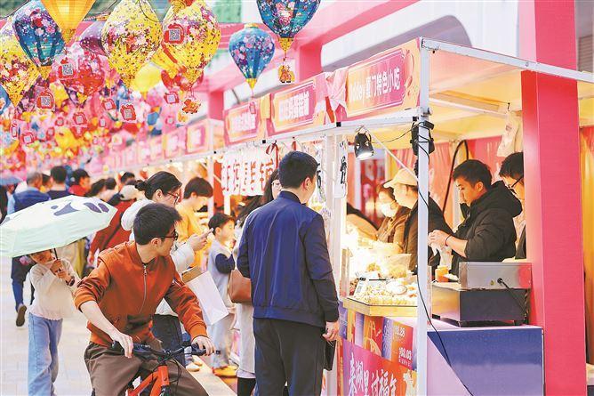 元宵市集摊位前人气满满。