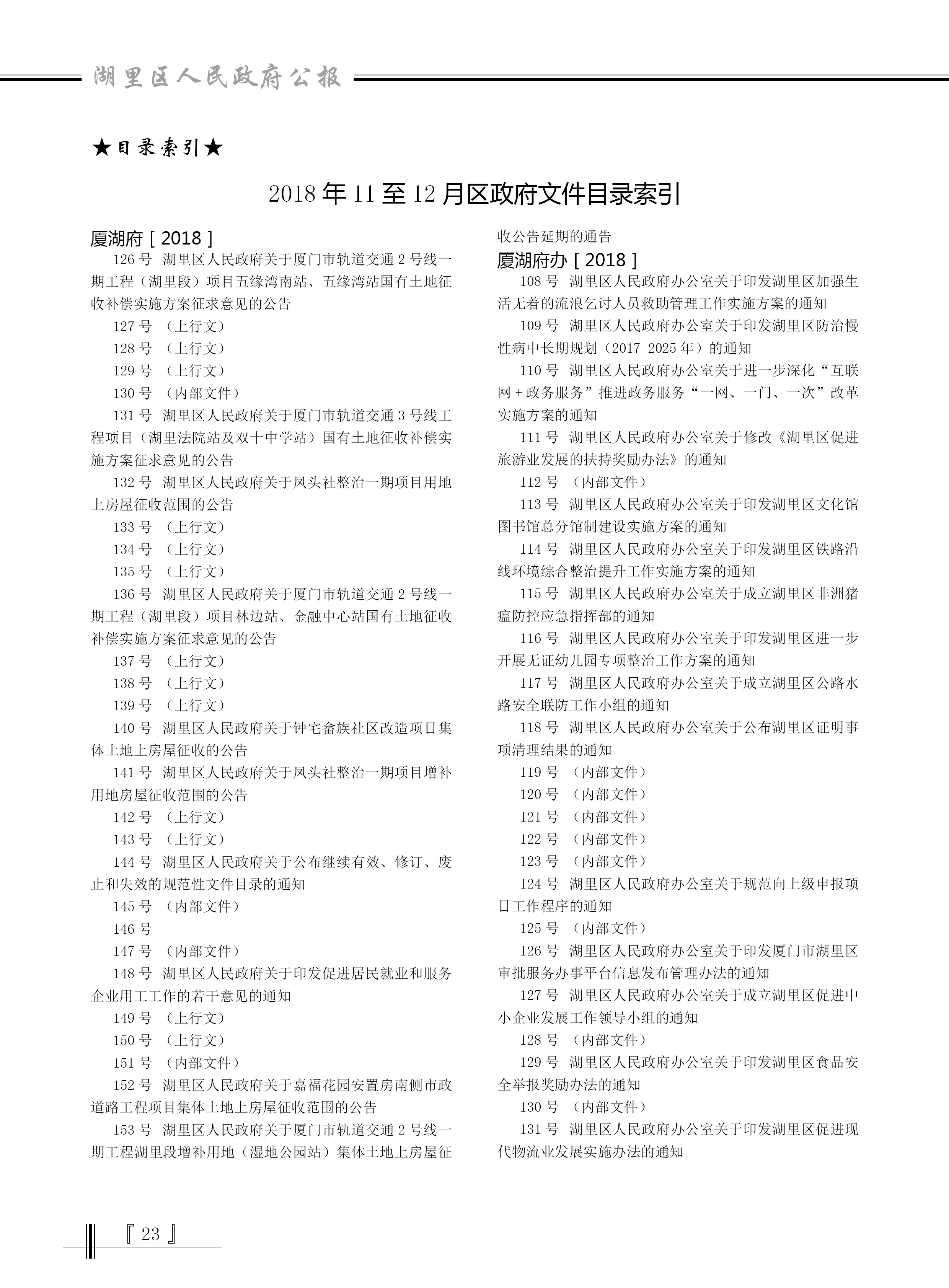 2018年11至12月区政府文件目录索引